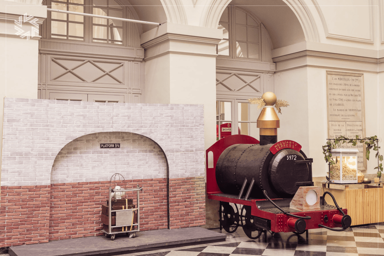 - Scénographie & décoration : reconstitution de la voie 9 ¾, de la grande salle et d’espaces immersifs